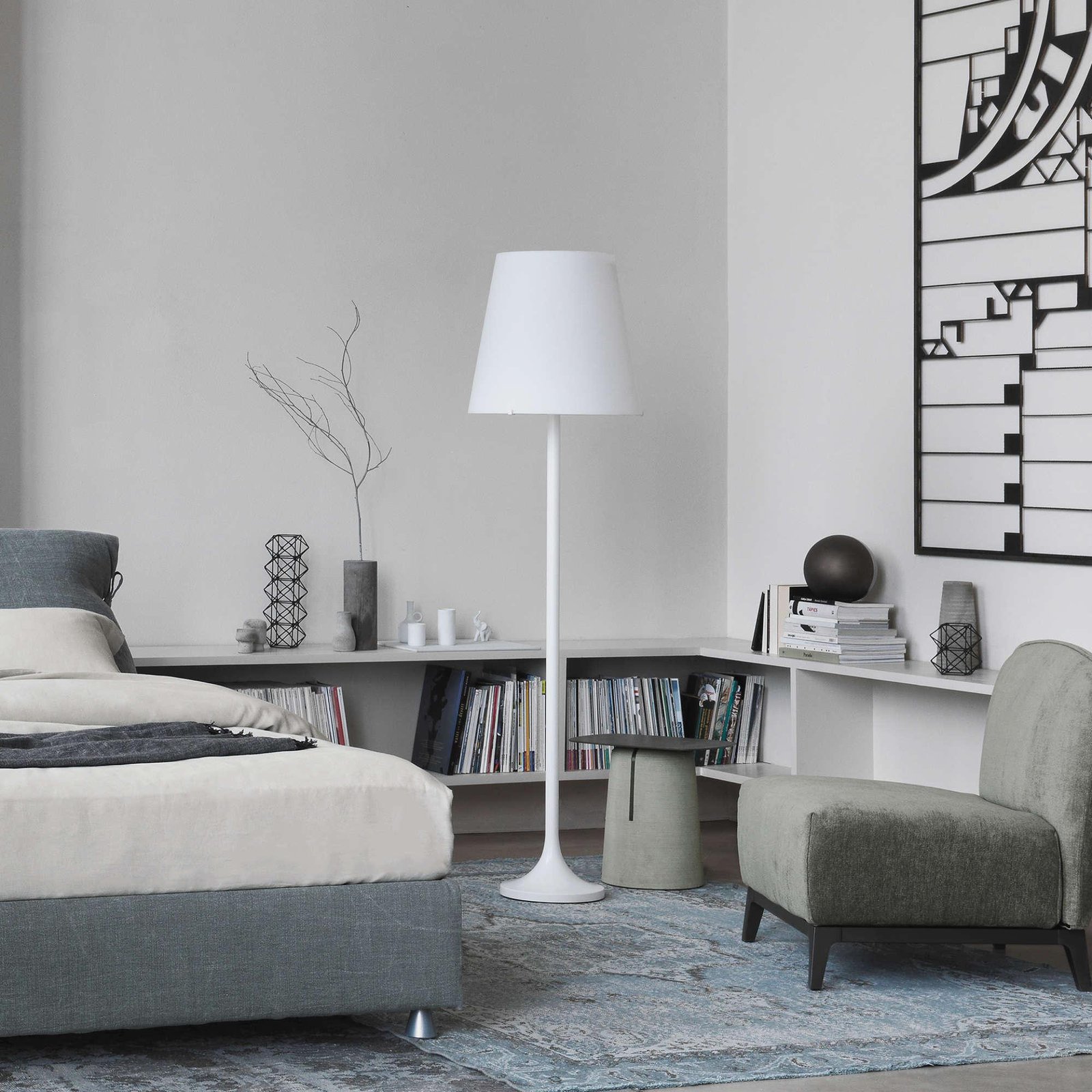 The most classic of floor lamps, equipped with a base that becomes, without interruption, a stem. A lamp that decorates rooms with style and illuminates them with accuracy and elegance.