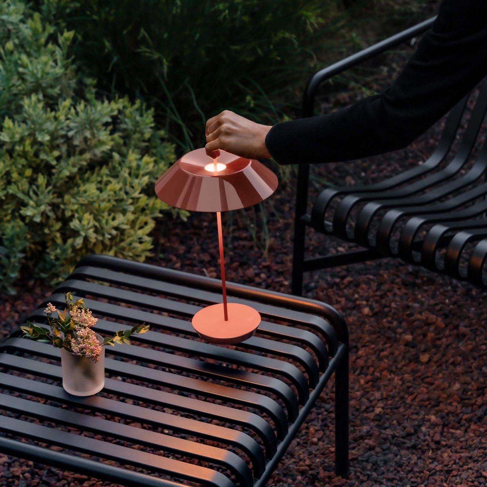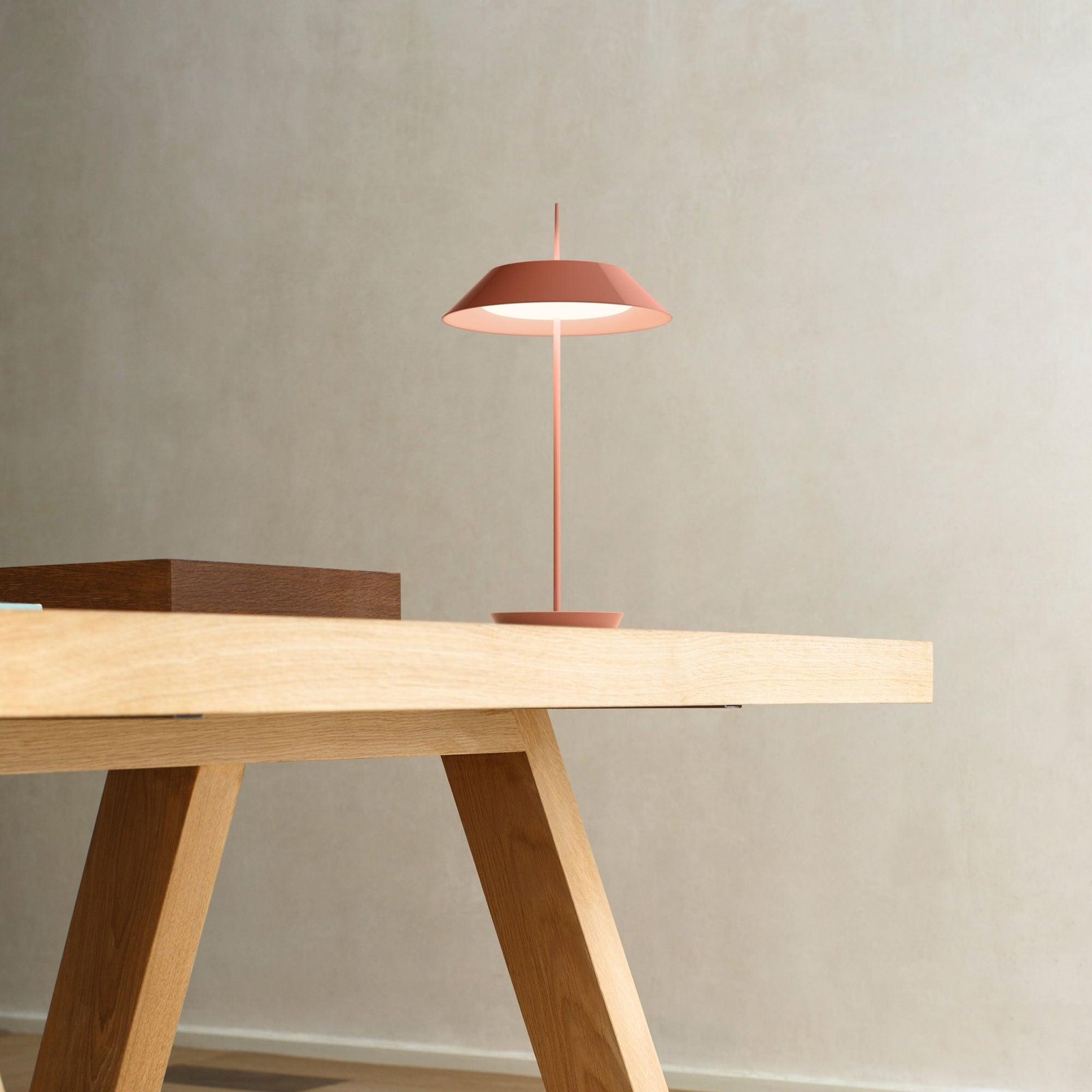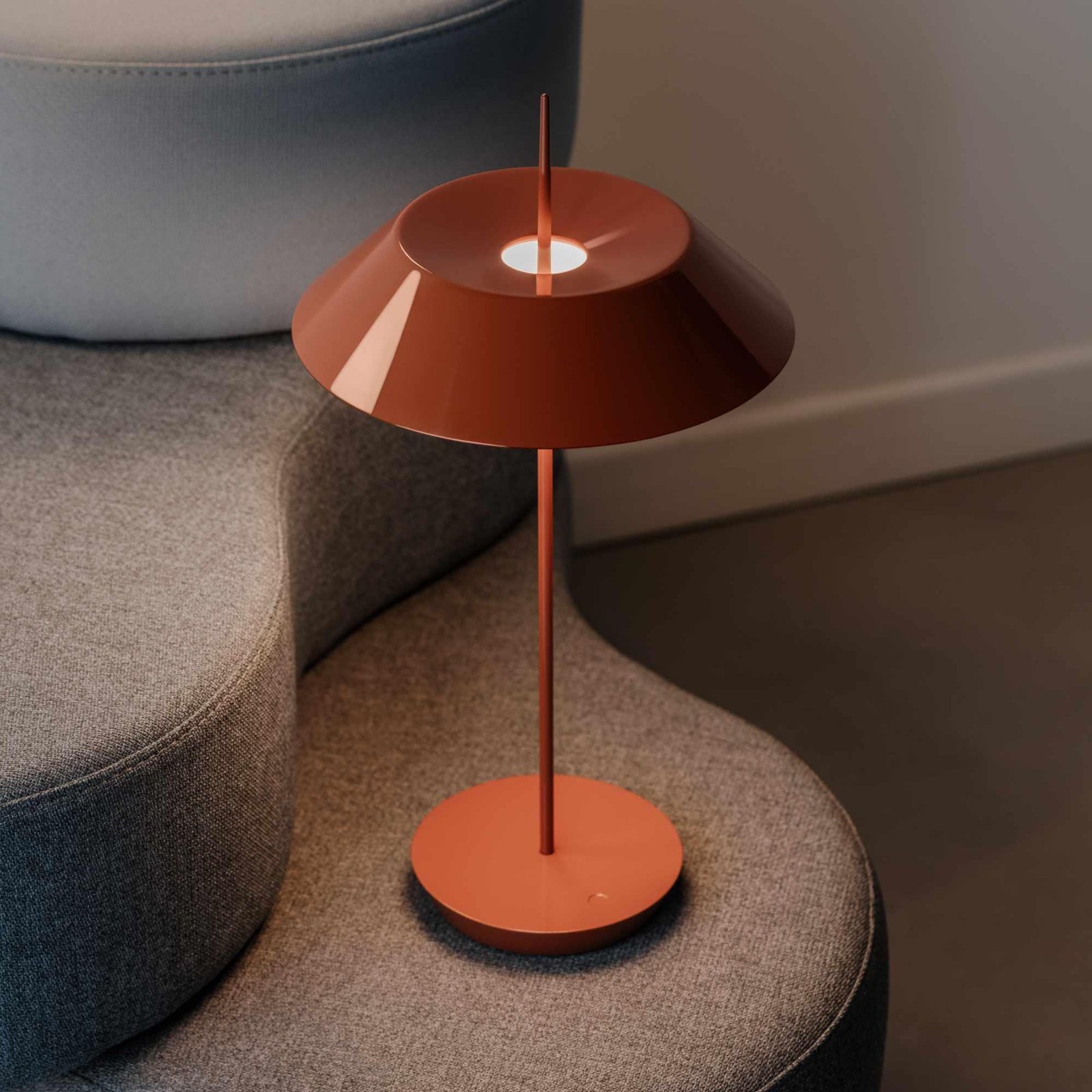 Mayfair Mini table lamp. A modern reimagining of the traditional 19th-century bouillotte table lamp, the Mayfair Mini collection makes a striking statement in a small-scale design. Featuring an intriguing play of straight lines and curved contours, its sculptural silhouette exudes an elegant equilibrium.