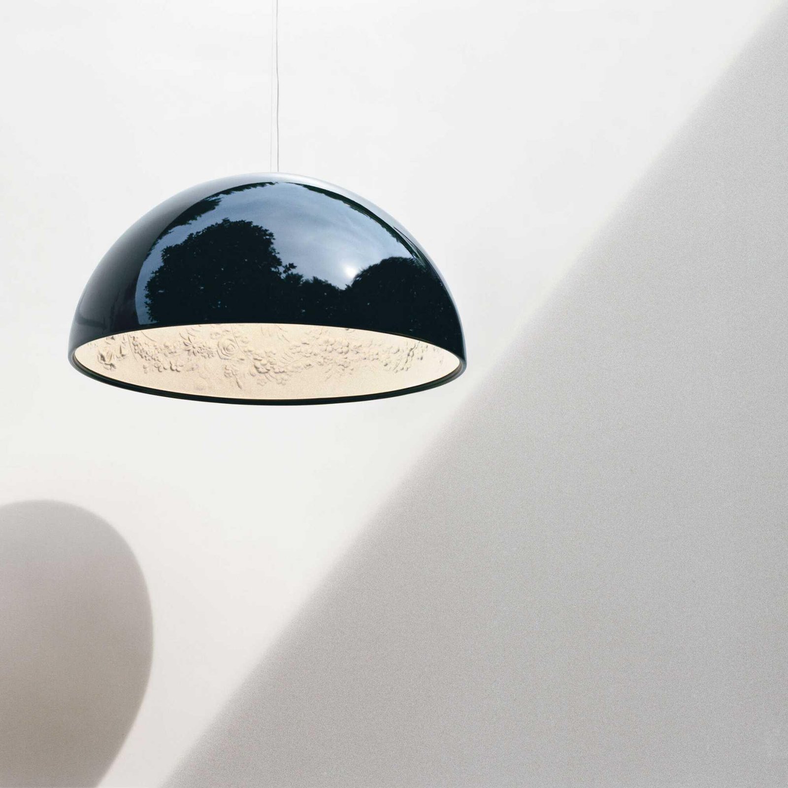 bushing in die-cast, polished aluminum alloy, protected with transparent paint on the entire visible part. Upper cable gland and blocking ring nut in black injection-molded PC (polycarbonate). Shaped, galvanized adjustment screws. Transparent, injection-molded, upper and lower silicone shock absorbers. Lamp holder and fixing support in black injection-molded PPS (polyphenylene sulfide). Flashed and blown opal glass diffuser. Molded fixing ring nut in die-cast aluminum alloy with alodine plating. Skygarden 1 frieze in photo-etched and mechanically drawn AISI 304 steel. Molded and galvanized steel ceiling attachment Gray, injection-molded PA6 (Nylon) rose.